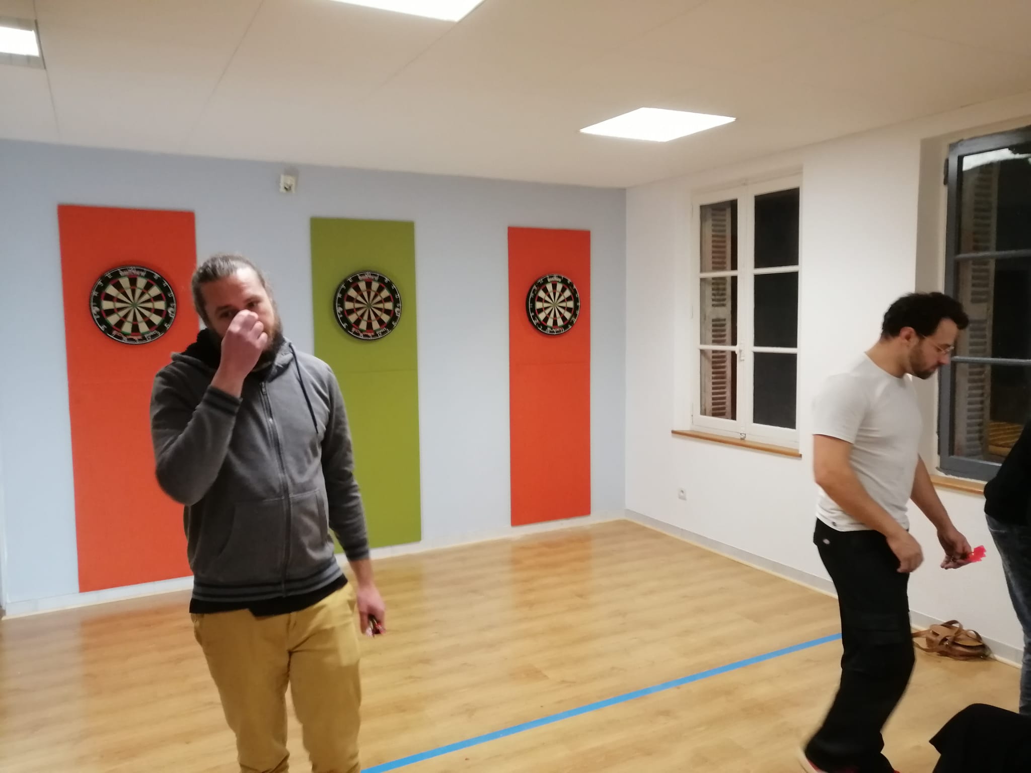 Les bénévoles de l’association ont réalisé la pose d’un nouveau parquet, la mise en peinture complète de la salle, ainsi que l’installation de plaques de protection de couleur orange et verte, disposées une sur deux sur chaque mur. Cette configuration a été pensée pour équiper les six cibles du club, réparties en deux lignes de tir de trois cibles chacune, offrant un meilleur confort de jeu et une meilleure lisibilité des espaces.