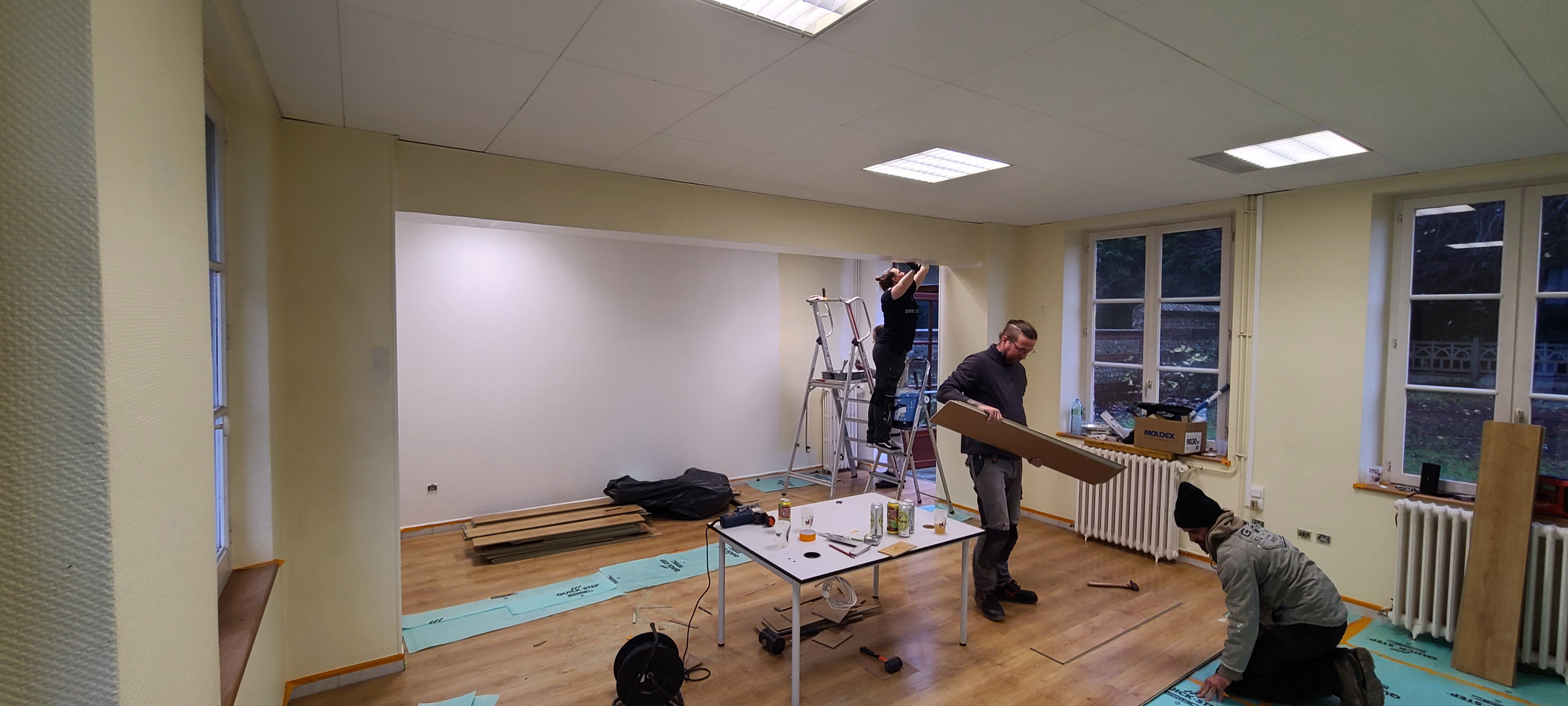 Le club de fléchettes La Flékette à Baons-le-Comte termine ses travaux : parquet, peinture, plaques murales et pour six cibles en Pays de Caux.